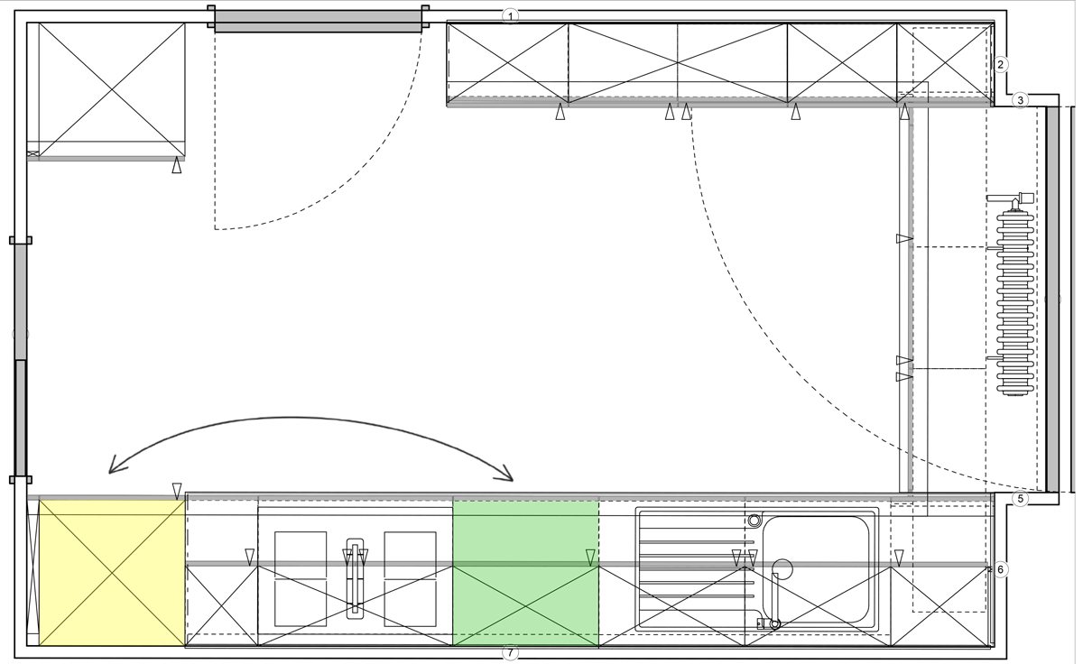 Die Küche U förmig erlaubt Ihnen häufig, den Spülbereich so zu planen, dass zum Kochbereich die Wege klein sind.